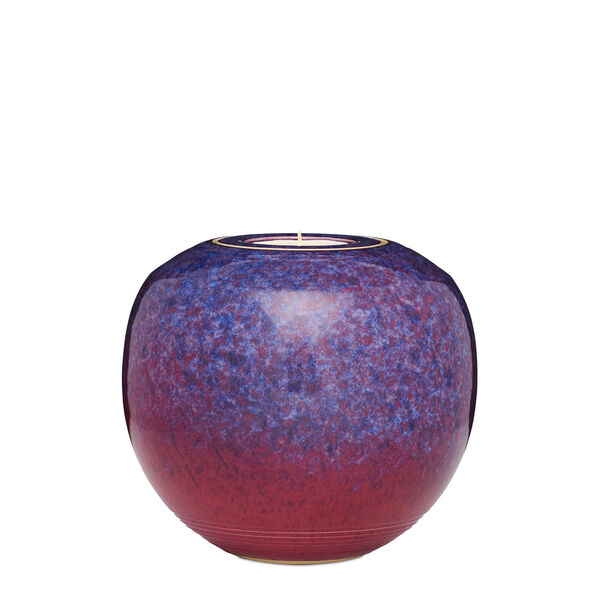 Each urn is lovingly thrown on the wheel, turned & bisque fired. Once cooled, it is hand glazed in the Ether Element palette. Ether is a striking mixture of violet and midnight blue bound together with pools of cream, magenta and dusty pink. All the colours of our cosmos.